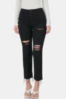 Distressed Raw Hem Cropped Jeans are a fashionable and versatile wardrobe staple. The raw hem and distressed detailing add a contemporary edge, perfect for creating a cool and casual look. These cropped jeans can be dressed up with heels or down with sneakers, making them a great addition to any fashion-forward wardrobe.